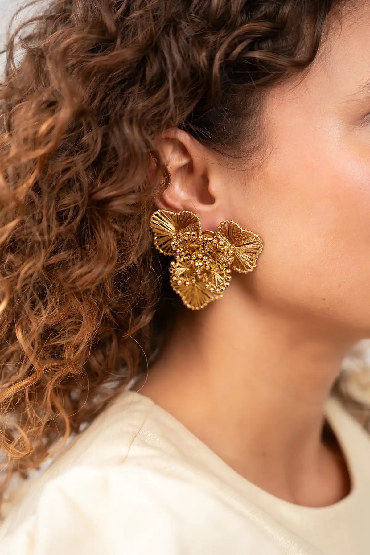 Beige Oorbellen Susan Flower Drop
